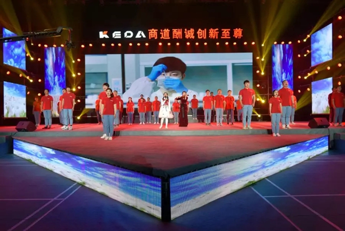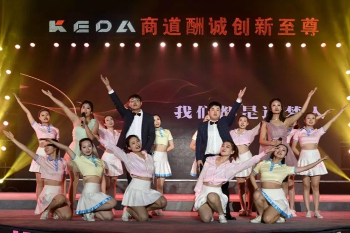 整場(chǎng)晚會(huì)以“創(chuàng)新之路”“時(shí)代驕傲”“自信前行”三個(gè)篇章分別展開(kāi)敘述,通過(guò)催人奮進(jìn)的歌舞、鼓舞士氣的方陣?yán)琛⒏腥思?lì)的敘事朗誦、正能量脫口秀、艱苦奮斗的視頻等多種形式呈現(xiàn)了科達(dá)人勇往直前、朝氣蓬勃的精神面貌,傳遞出科達(dá)將繼續(xù)向科技高峰奮力攀登,向“科達(dá)夢(mèng)”揚(yáng)帆遠(yuǎn)航的美好愿景。晚會(huì)現(xiàn)場(chǎng)還頒發(fā)了優(yōu)秀員工、忠誠(chéng)員工、2019“科達(dá)驕傲”人物及團(tuán)隊(duì)(含提名獎(jiǎng))等獎(jiǎng)項(xiàng),接近尾聲時(shí),全體科達(dá)人合唱《科達(dá)之歌》,唱出二十七年來(lái)的榮耀和感動(dòng);董事長(zhǎng)邊程帶領(lǐng)公司高管登臺(tái)與全體演員一齊高唱《明天會(huì)更好》,唱出明天的展望,心中的期盼和豪邁,晚會(huì)落下帷幕。