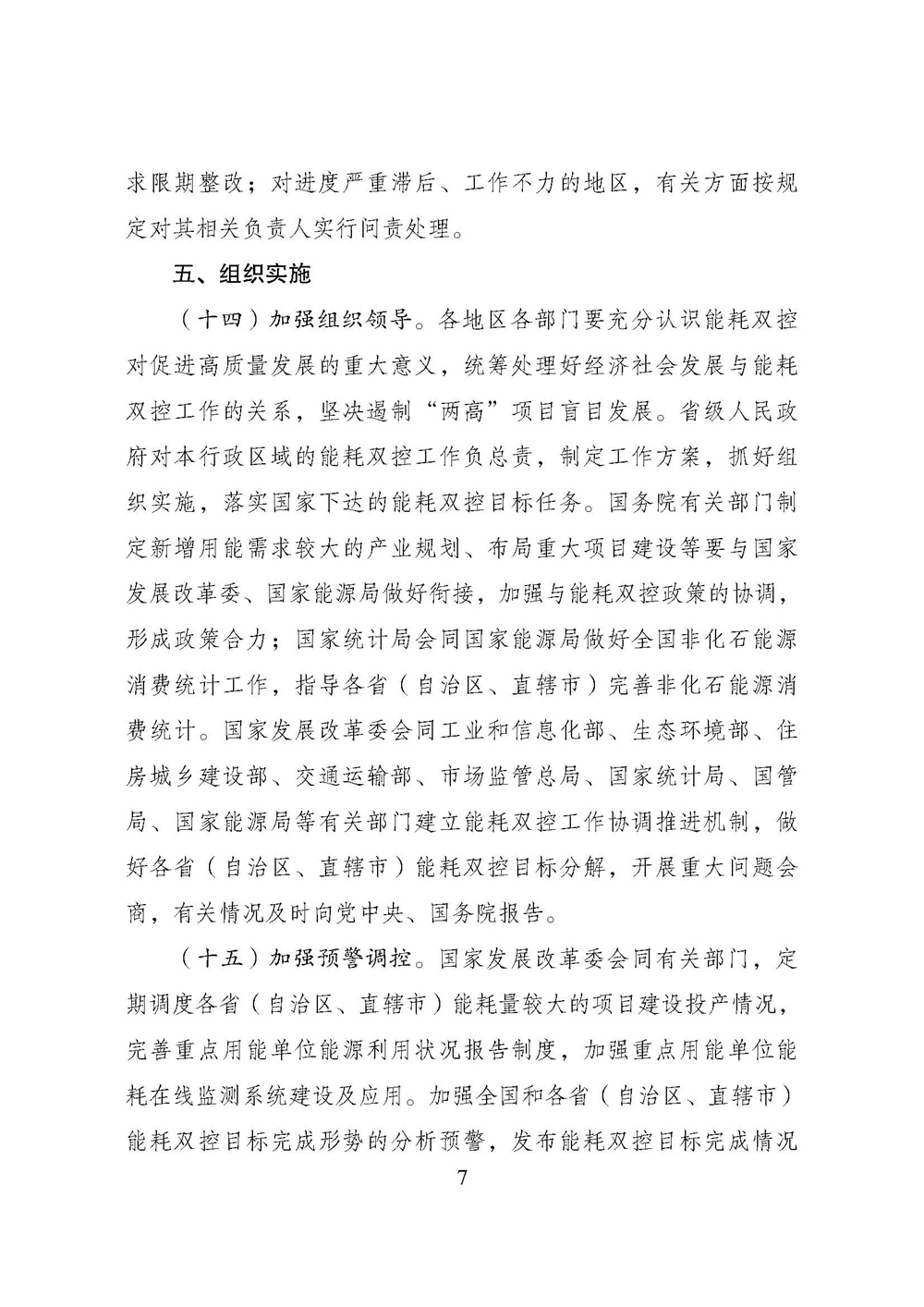 國家發展改革委關于印發《完善能源消費強度和總量雙控制度方案》的通知