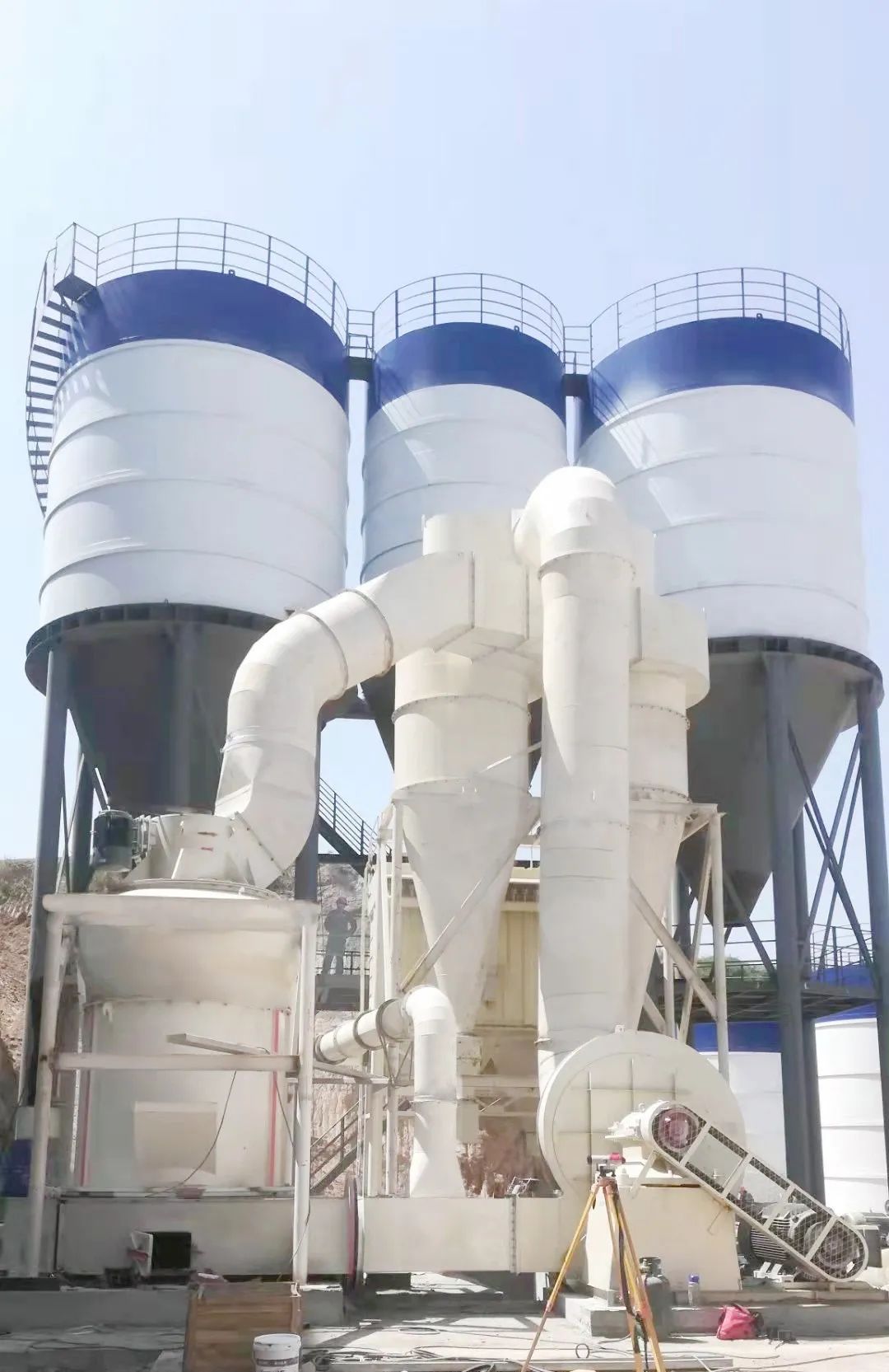 主要創新點一:優化鏟刀座傾角,調整鏟刀高度,提高生產產量10%以上;主機罩筒與回氣箱采用軟連接,磨輥裝置與梅花架間采用新型緩沖減震結構連接,提高了設備運行的平穩性和安全性;采用組合式襯板,減少維護成本和時間;采用主軸下支承裝置臺階孔式軸承壓蓋的密封機構,提高密封的可靠性,維護更方便;管道系統處在負壓狀態下工作,雙旋風收集器下部出粉口裝有鎖氣閥,粉體收集效率提高了10%以上;余風口配備了脈沖除塵器,排放粉塵的收集效率高達99.9%。