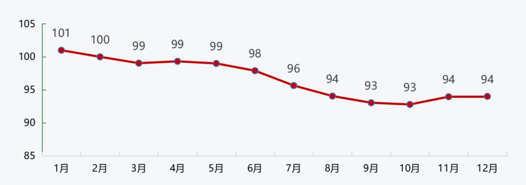2022年12月,碎石均價94元/噸,12月同比下跌7.9%。