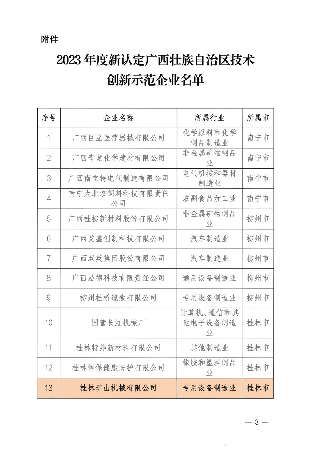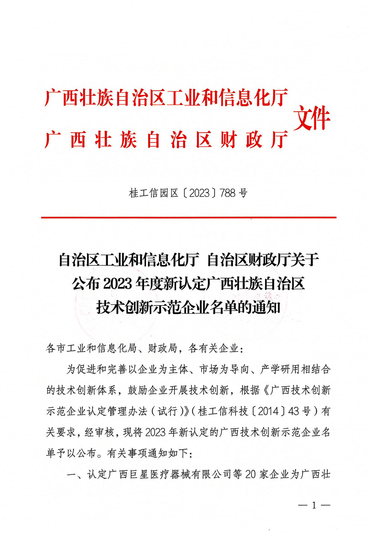 日前,自治區(qū)工業(yè)和信息化廳、自治區(qū)財政廳公布2023年度新認定廣西壯族自治區(qū)技術創(chuàng)新示范企業(yè)名單的通知,根據(jù)《廣西技術創(chuàng)新示范企業(yè)認定管理辦法(試行)》(桂工信科技〔2014〕43號)有關要求,經(jīng)市經(jīng)信部門推薦、專家評審、社會公示等環(huán)節(jié),桂林礦山機械有限公司等20家企業(yè)獲評2023年度新認定廣西技術創(chuàng)新示范企業(yè)。