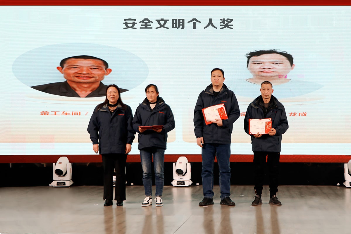 年會伊始,總經理周保弟對公司過去的一年工作進行總結,對全體員工在2023年的努力工作和付出表示感謝,對取得的成就和發展進行充分肯定,對年度優秀員工和優秀團隊表達祝賀。