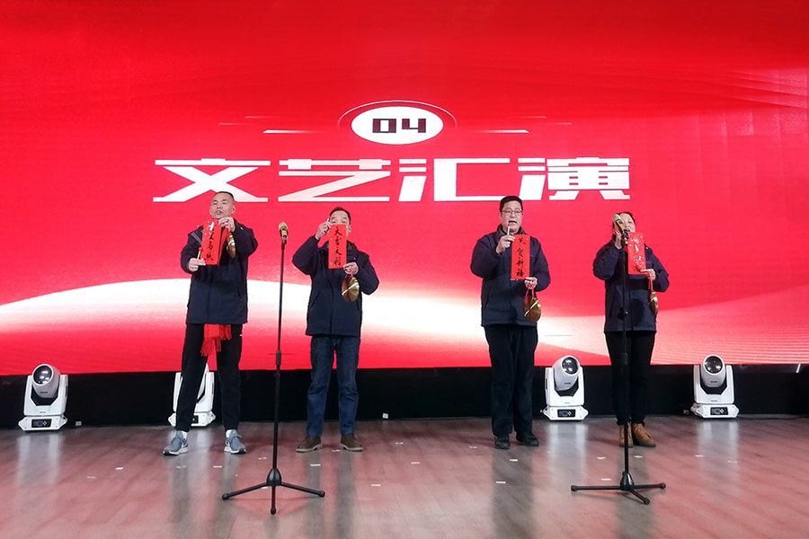 年會怎會少得了一場豐富多彩的演出呢,在催人淚下的暖場視頻中將文藝演出拉開序幕。舞臺上的燈光璀璨,每一位表演者都展現了他們的才華與魅力,為大家呈現出一場視覺與聽覺的盛宴。